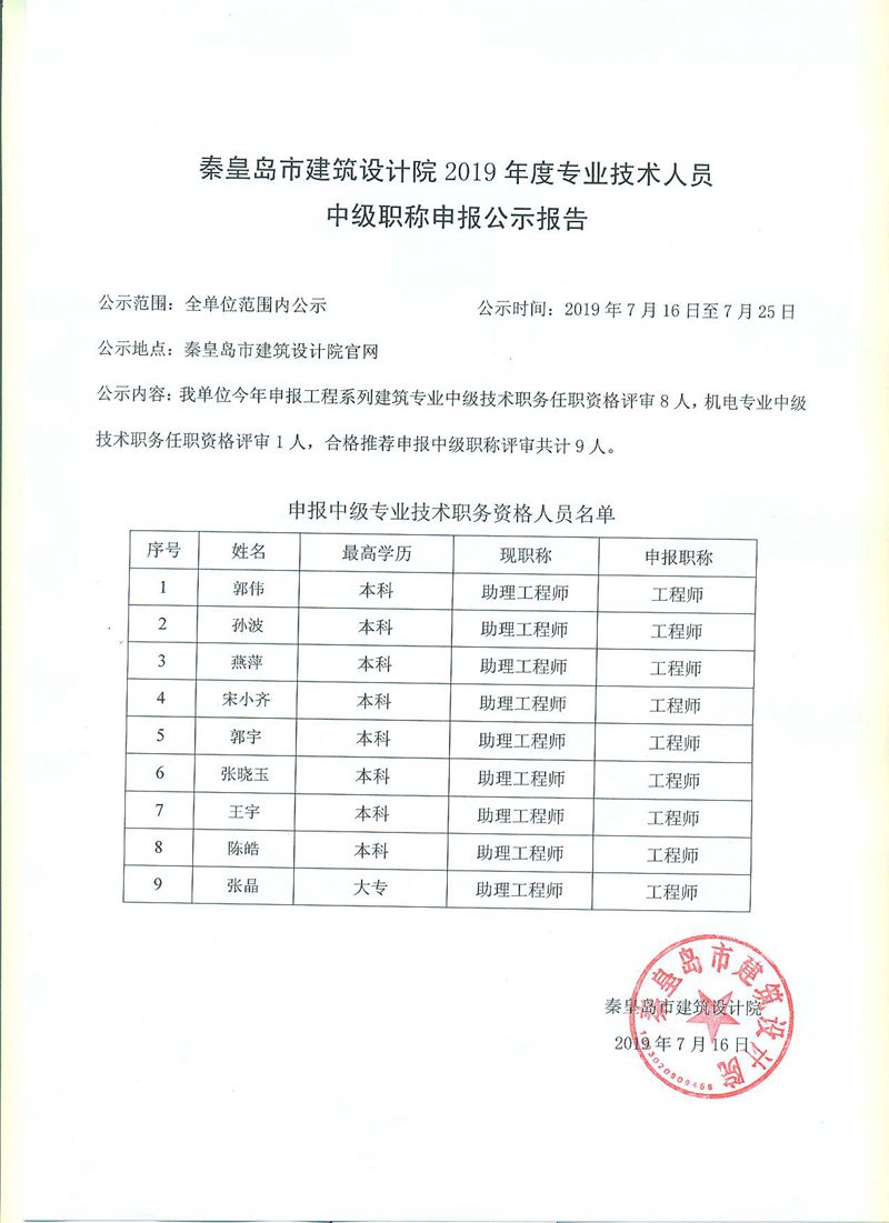 職稱(chēng)公示
